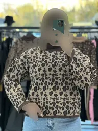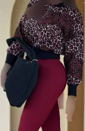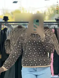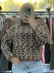 پلیور یقه اسکی بافت زنانه طرح پلنگی فری سایز