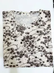تیشرت نخی زنانه طرح گل و دختر قواره بزرگ