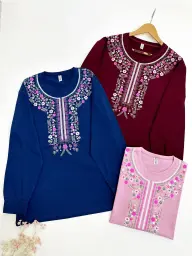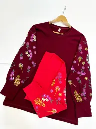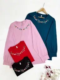 بلوز آستین بلند زنانه طرح گلدوزی رز پنبه سوپر اعلا