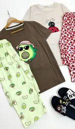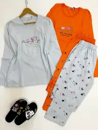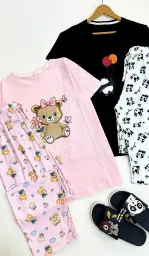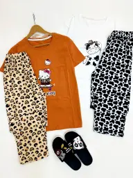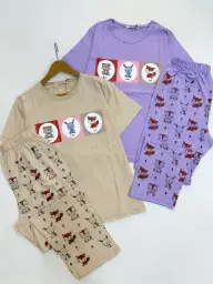 ست بلوز شلوار نخی زنانه طرح لولو و مولی
