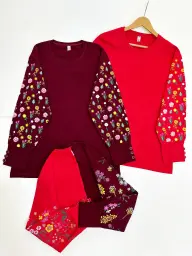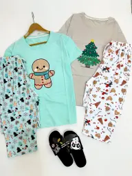 ست کریسمسی بلوز شلوار نخ پنبه قواره بزرگ طرح گوزن مناسب تا 48/50