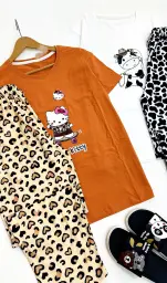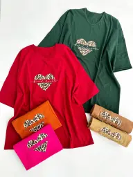 تیشرت لانگ زنانه طرح قلب پلنگی جنس پنبه سوپر