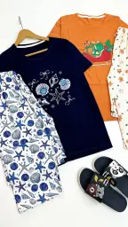 ست تیشرت و شلوار نخی زنانه طرح صدف و ستاره دریایی