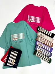 تیشرت باکسی زنانه نخی طرح پاپیون در 10 رنگ جذاب
