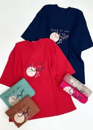 تیشرت آستین کوتاه زنانه ویسکوز پنبه طرحدار سایز بزرگ