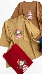 تیشرت لانگ قواره رستمی طرح دختر کارتونی، جنس پنبه سوپر، سایزبندی 44 تا 56، در 10 رنگ جذاب