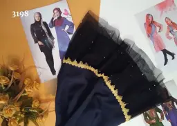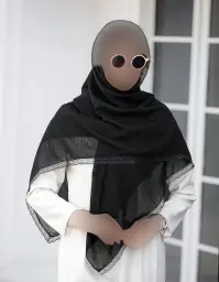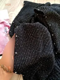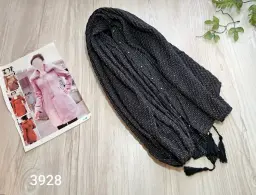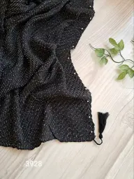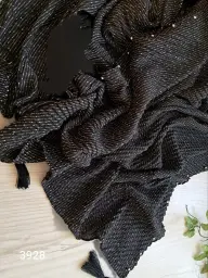 شال پلیسه شاین مشکی دور مروارید قواره 75×200 کد 3928
