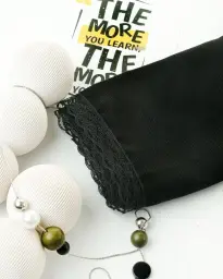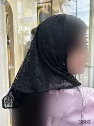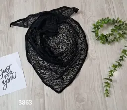 روسری مشکی طرح درختی دور دانتل قواره 130