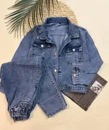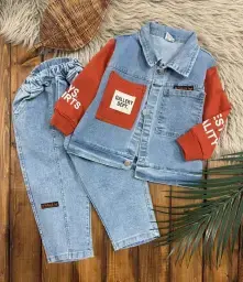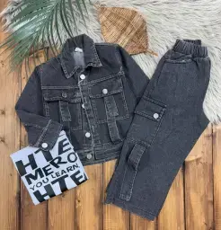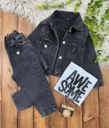 ست کت و شلوار جین اسپرت دخترانه و پسرانه دو جیب