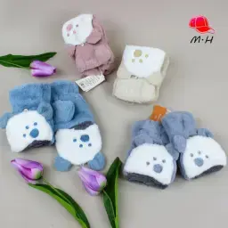دستکش پنج انگشتی پشمی داخل خز بچگانه و بزرگسال
