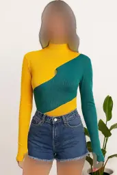 بادی زنانه کبریتی دورنگ یقه اسکی فینگردار
