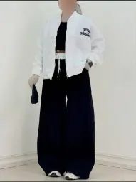 ست سه تیکه پاییزه زنانه شامل سویشرت، شلوار و نیم تنه