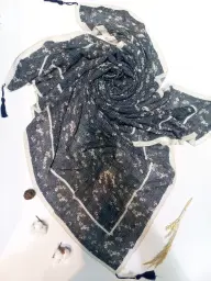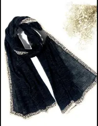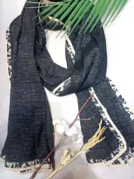 شال زنانه مشکی لب شاین برشکا طرح دار مناسب دهه فاطمیه