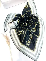 روسری نخی دست دوز طرح زنجیر و لوگو سایز 120x120