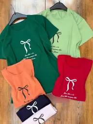 تیشرت نخی زنانه طرح پاپیون بسته 6 عددی