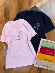 تیشرت نخی زنانه طرح چاپ بسته 6 عددی