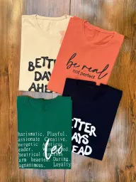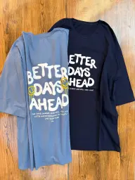 تیشرت لانگ نخی پنبه طرح Better Days Ahead