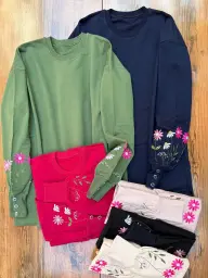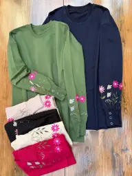 بلوز دورس زنانه گلدوزی شده آستین دکمه دار