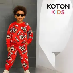 ست بلوز شلوار دورس مخمل طرح ماریو بچگانه KOTON KIDS