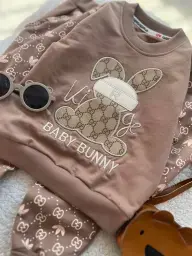 ست سوییشرت و شلوار بچگانه طرح خرگوش و لوگوی GG