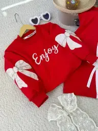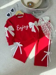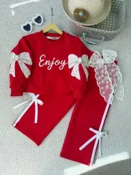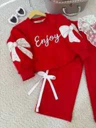 ست بلوز و شلوار دخترانه طرح پاپیون و enjoy