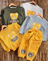 ست بلوز و شلوار مخمل کبریتی طرح خرس بچگانه