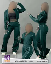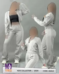 ست سه تیکه زنانه ورزشی شامل سوت شرت، تیشرت و لگینگ