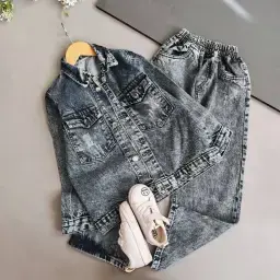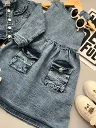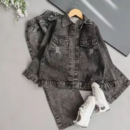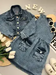 ست کت و سارافون جین دخترانه عیدانه کد 101