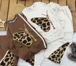 بلوز شلوار دخترانه طرح پلنگی با طرح پروانه و متن believe in yourself