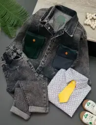 ست کت و شلوار لی اسپرت بچگانه طرح صلیب عیدانه