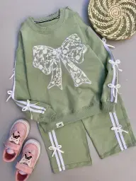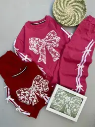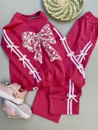 ست بلوز شلوار دخترانه دورس پاپیون دار طرح Enjoy