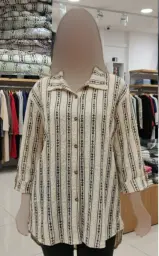 تونیک زنانه نخی گل گچی کوک دوزی یقه دکمه دار