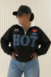 دورس نیم زیپ زنانه طرح HOT گلدوزی شده