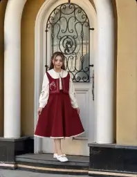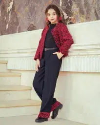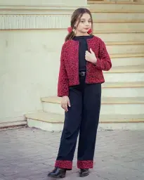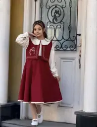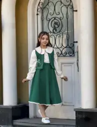 ست سه تیکه دخترانه یلدایی مدل جلیقه، دامن و شومیز برای سنین 8 تا 14 سال