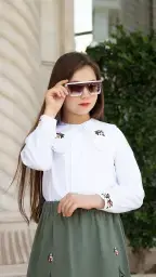 ست شومیز و دامن دخترانه کتان گلدوزی شده