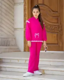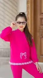 هودی و شلوار دخترانه طرح پاپیون جنس دورس پنبهای