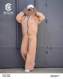 ست سویشرت و شلوار دورس سه نخ تو کرک زنانه کد 1918