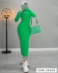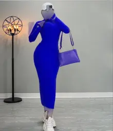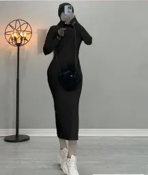 پیراهن ماکسی یقه اسکی آستین انگشتی گلدوزی شده زنانه