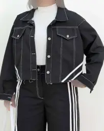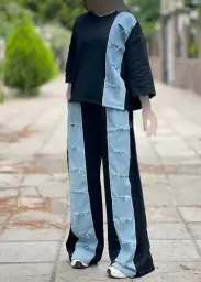 ست کراپ شلوار لی دمپا سه خط زنانه
