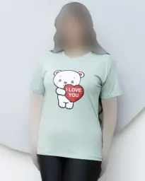 تیشرت زنانه طرح خرس با قلب I Love You، فری سایز، جنس پنبه سوپر اعلا
