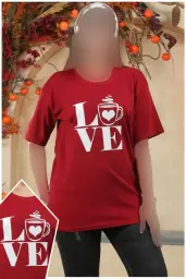 تیشرت زنانه طرح لاو و فنجان قهوه، سایزبندی 36 تا 50، جنس پنبه سوپر اعلا