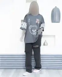 تیشرت لانگ بیگ سایز طرح خرس ملانژ اعلا