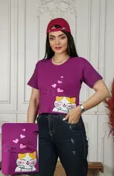 تیشرت زنانه طرح گربه با نوشته "Have a nice nay"