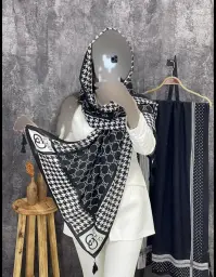 شال نخی بلک وایت منگوله دار طرح گوچی و شنل سایز 75×195