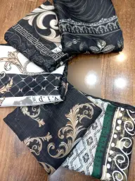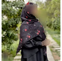 روسری نخی پنبه دست دوز طرح دار سایز 140×140