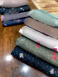 روسری نخی پنبه دست دوز طرح گل و خالدار سایز 140x140