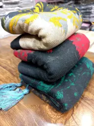 شال نخی گلیمی منگوله دار زنانه طرح دار سایز بزرگ