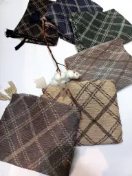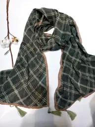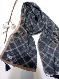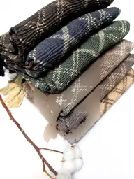 شال زنانه پاییزی برشکا طرح چهارخانه منگوله دار اورجینال