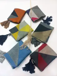 شال نخی گلیمی منگوله دار طرح دار زنانه