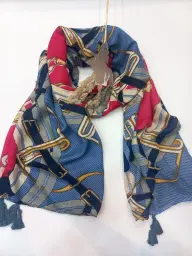شال نخی گلیمی منگوله دار طرح سگک و زنجیر سایز 75×195